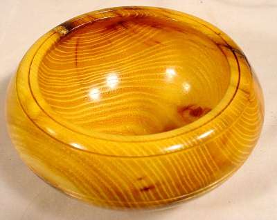 two views of a very nifty natural edge bowl fresh off the lathe (and so still retaining the bright yellow color)