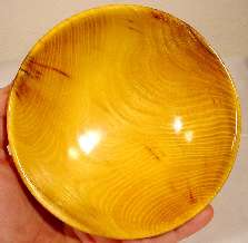 osage orange highlight on a turned bowl. the bright yellow color is accurate. The center wood is cocobolo, and just to the left of that, the thin yellow wood is also osage orange --- the much darker color is accurate (it is from a different lot). | ||||