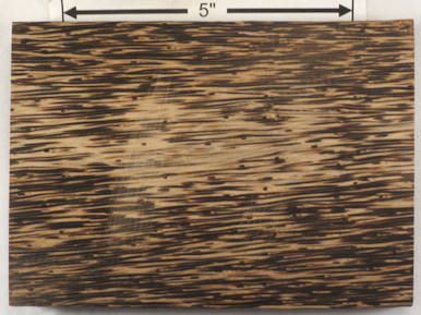 small thin plank and end grain --- this was sent to me for identification. At a quick glance, it looked a lot like macassar ebony but the fibrous surface made it pretty clear that it was black palm and once I had sanded down the end grain (see below) I could see that it is unquestionably black palm.