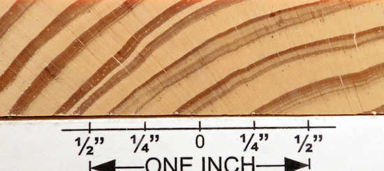both sides of a sample plank of Japanese black pine / Pinus thunbergii --- HUGE enlargements are present. This sample was loaned to me by David Clark whom I thank for this and other contributions to the site.