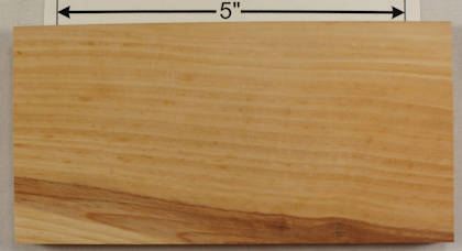 both sides of a sample plank of Japanese white pine / Pinus parviflora --- HUGE enlargements are present. This sample was loaned to me by David Clark whom I thank for this and other contributions to the site. Uh ... I really screwed up the focus on the labeled side, but I've already sent the sample back to David, so unfocused it stays.