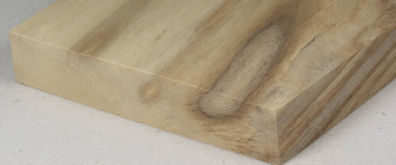 sample plank and end grain, sold to me as Chinese tallowtree / tallowtree popcorn / Sapium sebiferum. This is another one of the many incredibly crappy wood samples that I got from the IWCS so I don't know whether this plank is representative of the species or more likely, as I believe, a junk piece with blue stain.