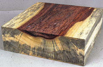 both sides of a spalted sapwood sample of tamarind / Tamarindus indica --- HUGE enlargements are present. I have lost track of where I got this piece and what the provenance is but I believe it was loaned to me by David Clark whom I thank for this and other contributions to the site.