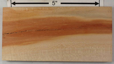 the sample pieces that I made from the two bole sections. My goal was to get at least one good flat cut sample and one good quartersawn sample and at least one good IWCS-sized sample for my friend Mark Peet. I got all that and more. I note that these pieces have slightly thinner rays than some of the formal samples up above.
