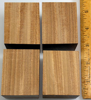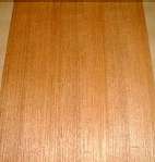 | teak / Tectona grandis ** (syn. Tectona theca) also Tectona hamiltoniana and Tectona philippinensis, both of which are Philippine teak 5" x 5" flat cut, 5" x 5" quartersawn, 3/4" wide end grain, and a 1/4" x 1/4" end grain closeup. Usually Ring porous with large earlywood pores in rows of up to 4 or 5 pores thick and medium to small latewood pores. Occasional pore multiples (generally radial) of 2 or 3 pores, all with vasicentric parenchyma. Growth ring boundaries are clear, marginal parenchyma is present, sometimes thick, rays are obvious at 10X and there can be very obvious, albeit fairly small, ray flakes on quartersawn surfaces. Sometimes semi ring porous or even diffuse porous Widely used for high end sail-boat decks due to two things: (1) its resistance to fading due to saltwater and sunlight and its ready acceptance of a chemical treatment that brings back the natural beauty once it DOES suscumb to the salt and sun, and (2) the fact that it does not promote rusting of contiguous metal fittings. ![]() ** There are several dozen species that have "teak" as all or part of one or more of their common names but this page is intended for Tectona spp. unless otherwise noted with a sample. |