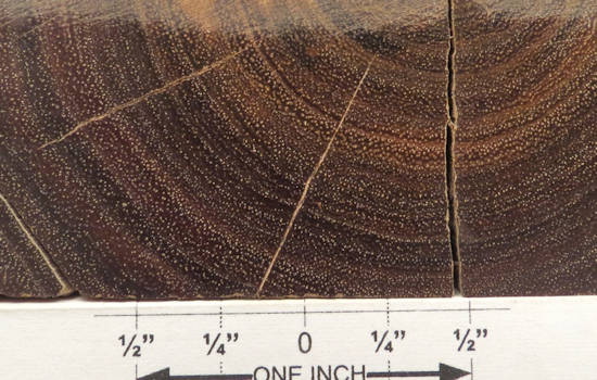 both sides of a sample plank of Texas ebony / Ebenopsis ebano --- HUGE enlargements are present.