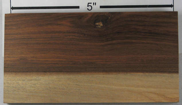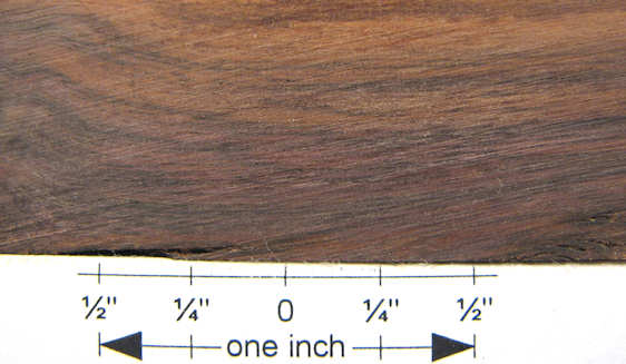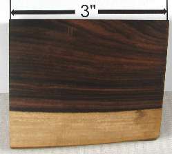 both sides of a sample plank of texas ebony / Pithecellobium flexicaule --- HUGE enlargements are present. This sample was loaned to me by David Clark whom I thank for this and other contributions to the site.