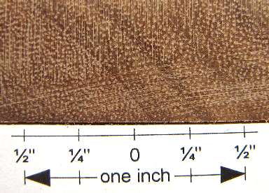 both sides of a sample plank of quartersawn tiama / Entandrophragma angolense --- HUGE enlargements are present. This sample was loaned to me by Mark Peet whom I thank for this and other contributions to the site.