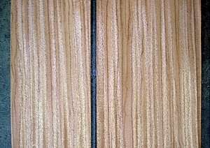 both sides of a sample plank of taima / Entandrophragma angolense --- HUGE enlargements are present. This sample was loaned to me by Mark Peet whom I thank for this and other contributions to the site.
