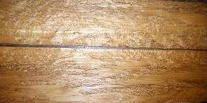 both sides of a sample plank of quartersawn timborana / Enterolobium schomburgkii --- HUGE enlargements are present. This sample was loaned to me by Mark Peet whom I thank for this and other contributions to the site.