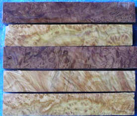 This is an Australian wood that comes from a very small tree (15 feet to 45 feet tall, with diameter up to 18 inches). You only very rarely see it in lumber form ... it's mostly burl of the tree that is of interest.